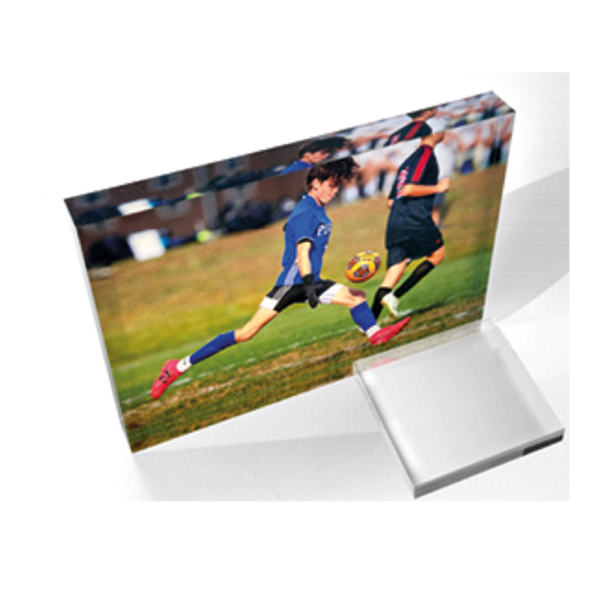 The acrylic photo block is a unique and modern way to display great memories. The acrylic photo block is reversed printed directly on with high quality UV inks to showcase the beauty and uniqueness of the acrylic. Each acrylic photo block is custom made at time of order and comes ready to display on you table top. This is a free standing product.